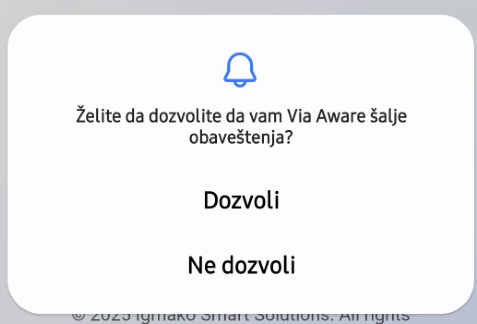 1. Prikazivanje obaveštenja (notifications). Ova dozvola omogućava aplikaciji da prikazuje obaveštenja (ulazak u zonu situacije).